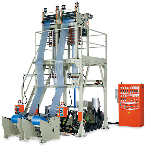Универсальный двухголовый трехслойный(А-В-А) экструдер для раздува рукавной пленки из ПНД,ПВД, ЛПВД.