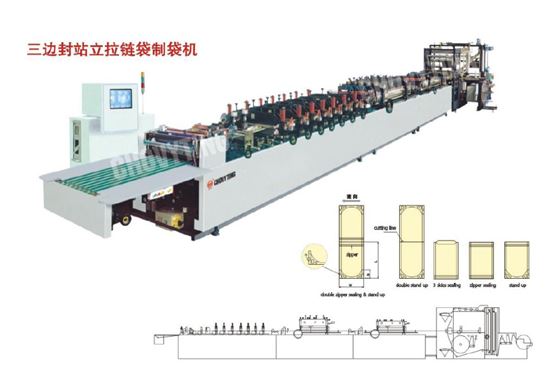 Машина для изготовления прочных пакетов из ламинированной пленки. Пригодна для производства различных мягких пакетов из ламинированного материала, например пакетов для стиральных порошков, пакетов для сладостей и т.д.